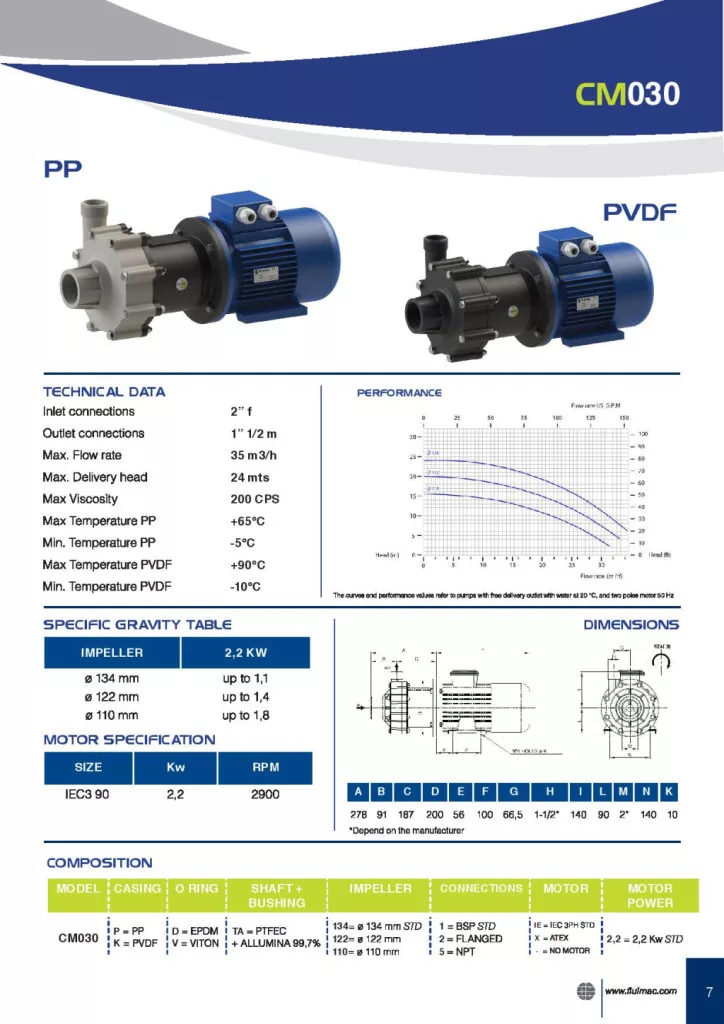 Compass 35 m3/h kapacitású PP házas mágneskuplungos vegyi centrifugál szivattyú Viton, 3 fázis Compass 35 m3/h kapacitású PP házas mágneskuplungos vegyi centrifugál szivattyú Viton, 3 fázis