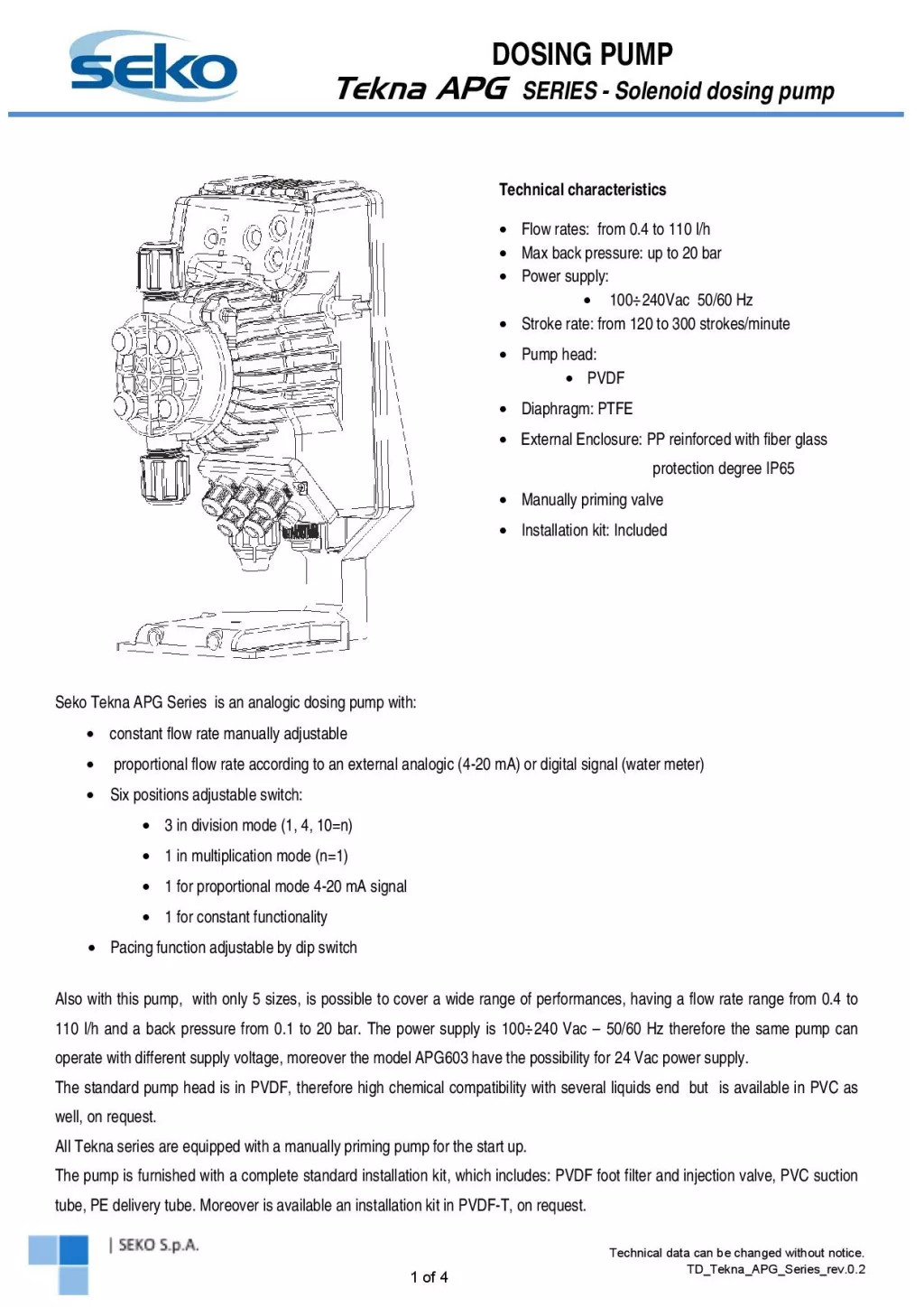 SEKO TEKNA 110 l/h kapacitású impulzusjellel vezérelhető adagolószivattyú EPDM tömítéssel SEKO TEKNA 110 l/h kapacitású impulzusjellel vezérelhető adagolószivattyú EPDM tömítéssel SEKO TEKNA 110 l/h kapacitású impulzusjellel vezérelhető adagolószivattyú EPDM tömítéssel SEKO TEKNA 110 l/h kapacitású impulzusjellel vezérelhető adagolószivattyú EPDM tömítéssel