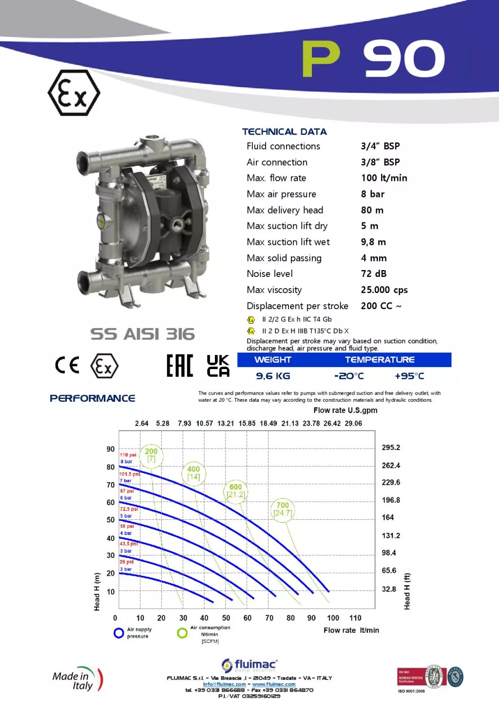 Fluimac Phoenix 100 l/perces rozsdamentes acél teflonmembrános membránszivattyú ATEX Zóna1-be Fluimac Phoenix 100 l/perces rozsdamentes acél teflonmembrános membránszivattyú ATEX Zóna1-be