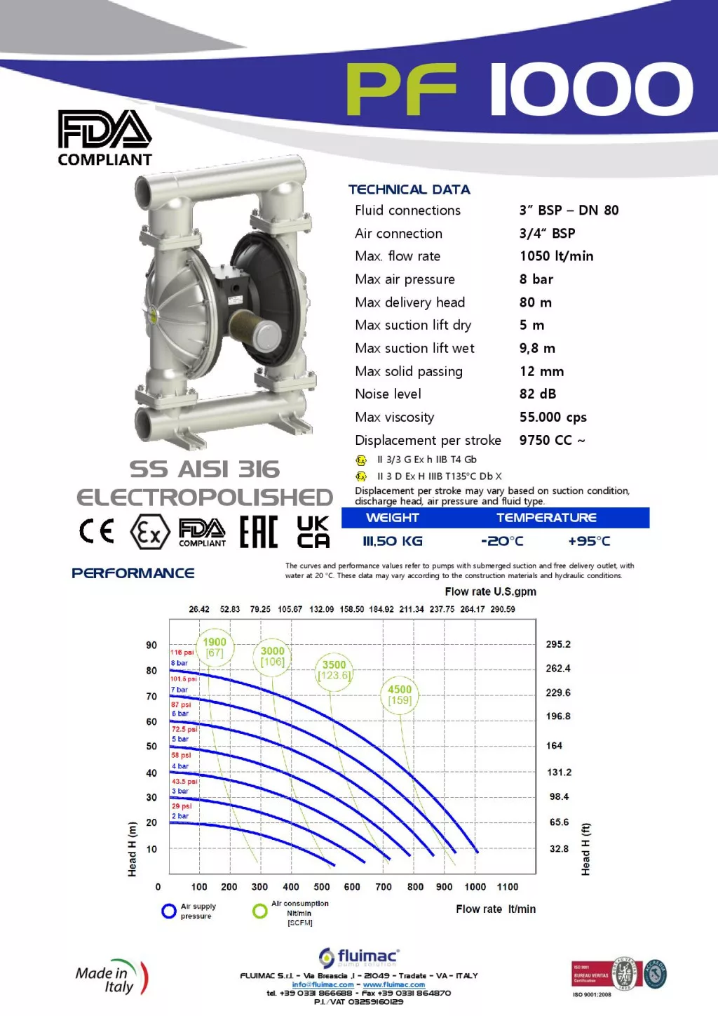 Fluimac Phoenix 1000 l/perces rozsdamentes acél élelmiszeripari membránszivattyú Fluimac Phoenix 1000 l/perces rozsdamentes acél élelmiszeripari membránszivattyú