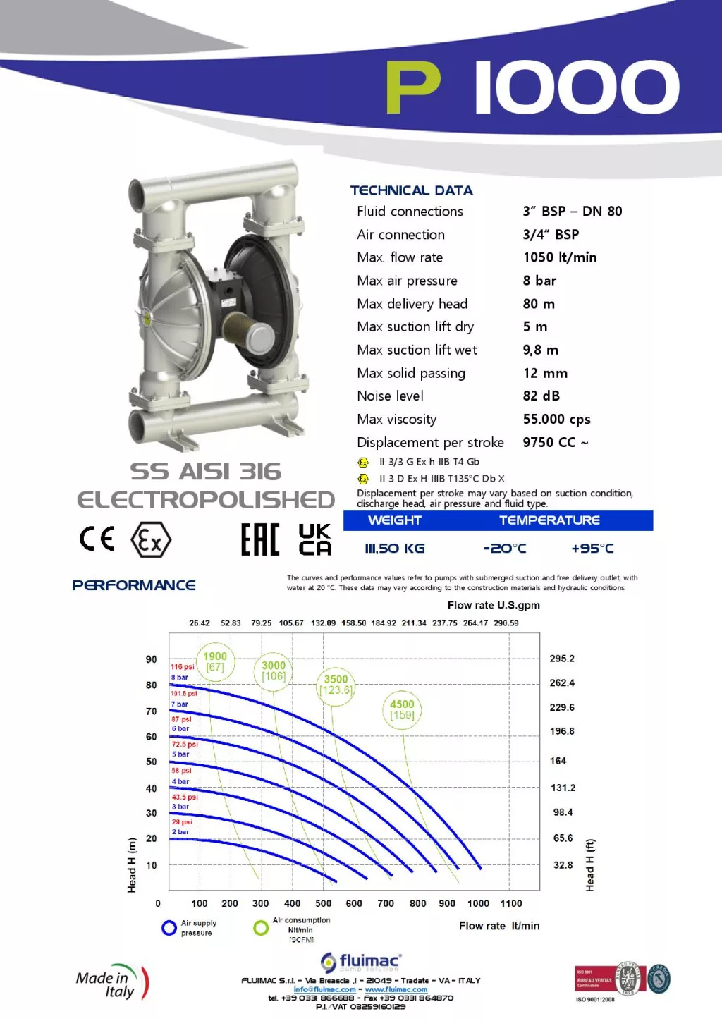 Fluimac Phoenix 1000 l/perces rozsdamentes acél házas teflonmembrános membránszivattyú Fluimac Phoenix 1000 l/perces rozsdamentes acél házas teflonmembrános membránszivattyú