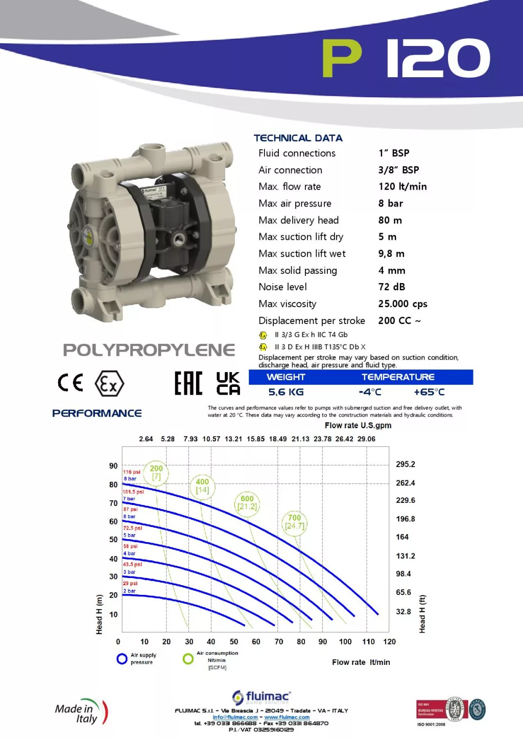Fluimac Phoenix 120 l/perces műanyagházas membránszivattyú enyhén koptató közeghez Fluimac Phoenix 120 l/perces műanyagházas membránszivattyú enyhén koptató közeghez