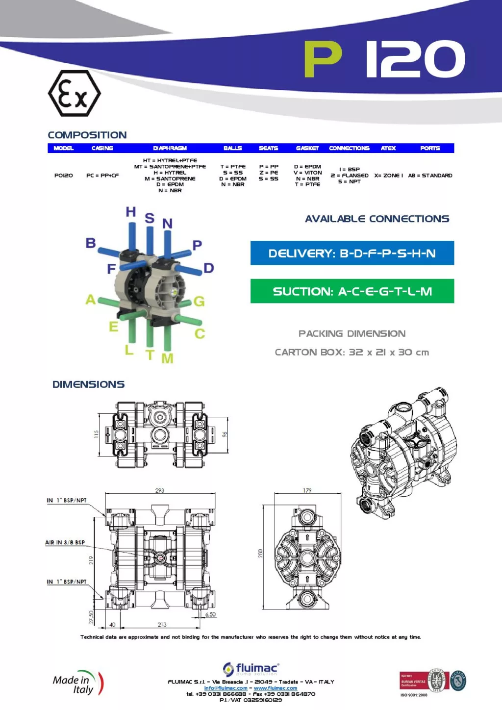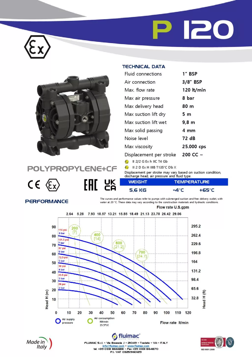 Fluimac Phoenix 120 l/perces műanyagházas teflonmembrános membránszivattyú ATEX Zóna1-be Fluimac Phoenix 120 l/perces műanyagházas teflonmembrános membránszivattyú ATEX Zóna1-be
