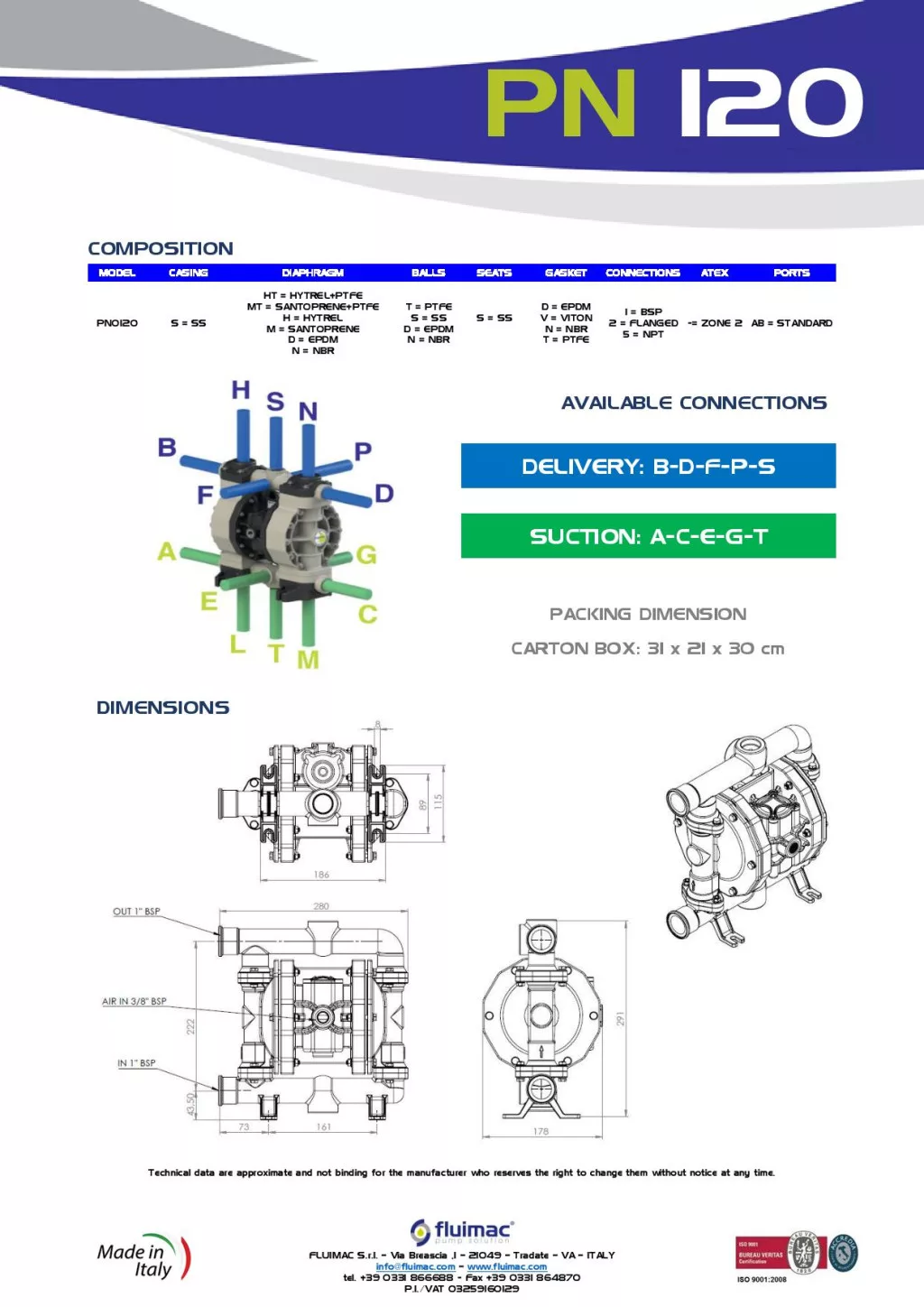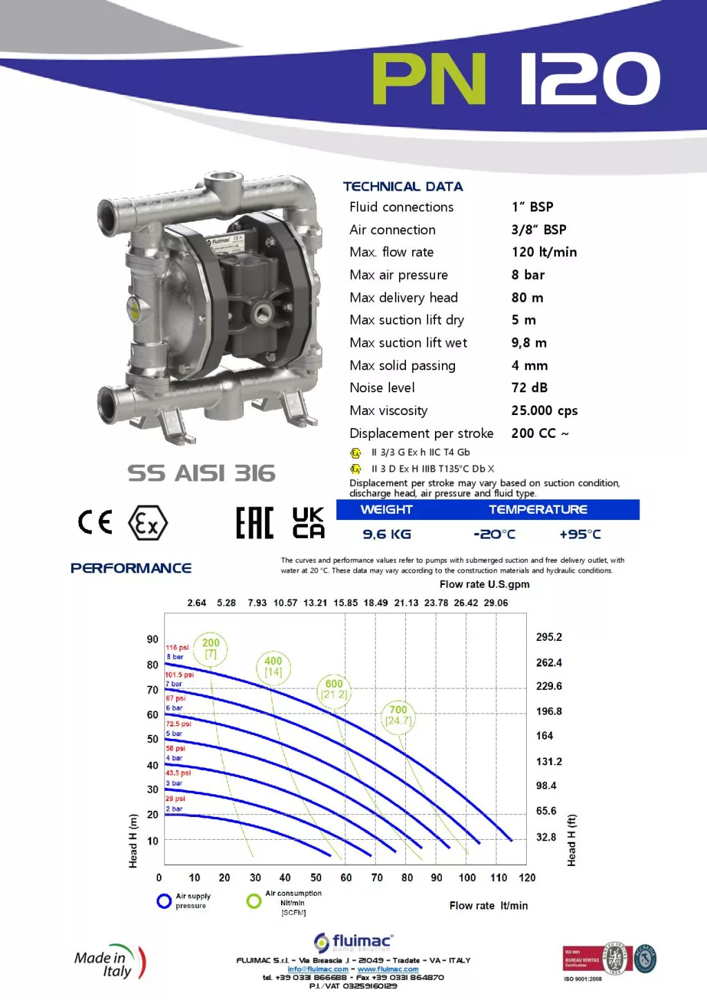 Fluimac Phoenix 120 l/perces rozsdamentes acél házas teflonmembrános membránszivattyú Fluimac Phoenix 120 l/perces rozsdamentes acél házas teflonmembrános membránszivattyú