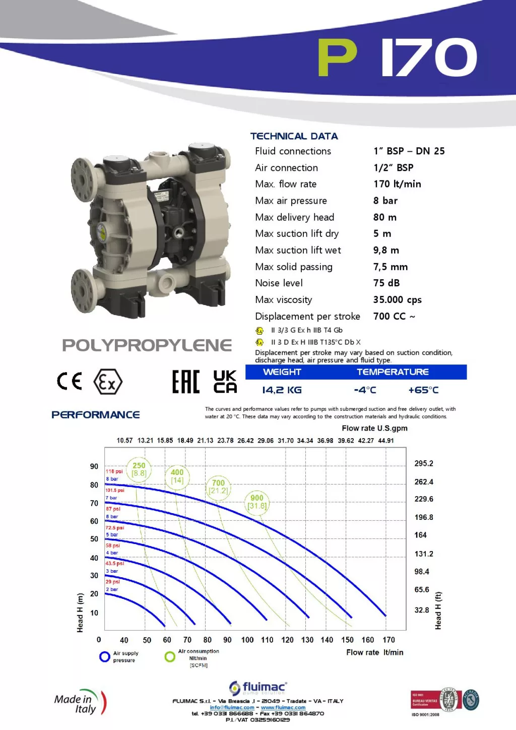 Fluimac Phoenix 170 l/perces műanyagházas membránszivattyú enyhén koptató közeghez Fluimac Phoenix 170 l/perces műanyagházas membránszivattyú enyhén koptató közeghez