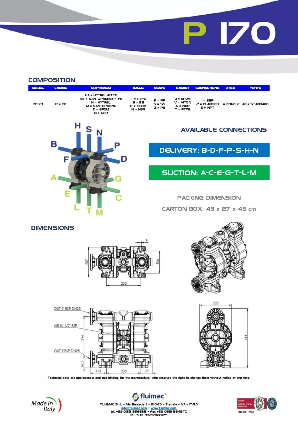 Fluimac Phoenix 170 l/perces műanyagházas teflonmembrános membránszivattyú Fluimac Phoenix 170 l/perces műanyagházas teflonmembrános membránszivattyú