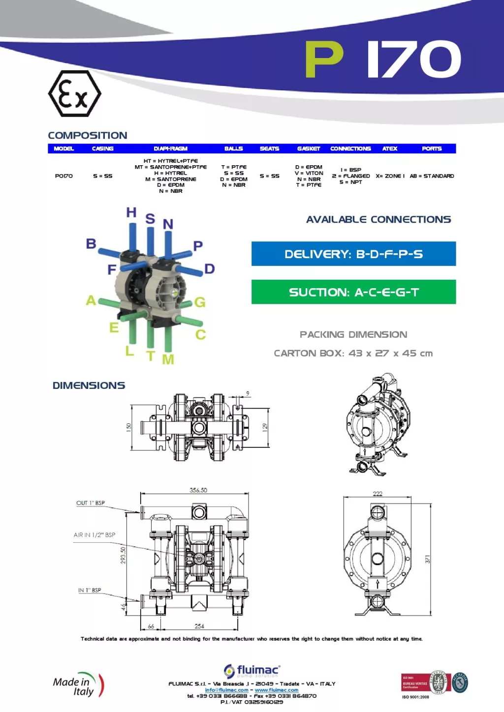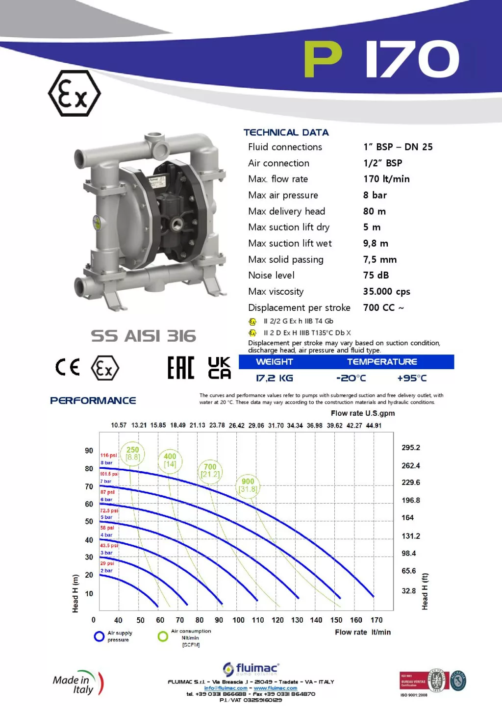 Fluimac Phoenix 170 l/perces rozsdamentes acél teflonmembrános membránszivattyú ATEX Zóna1-be Fluimac Phoenix 170 l/perces rozsdamentes acél teflonmembrános membránszivattyú ATEX Zóna1-be