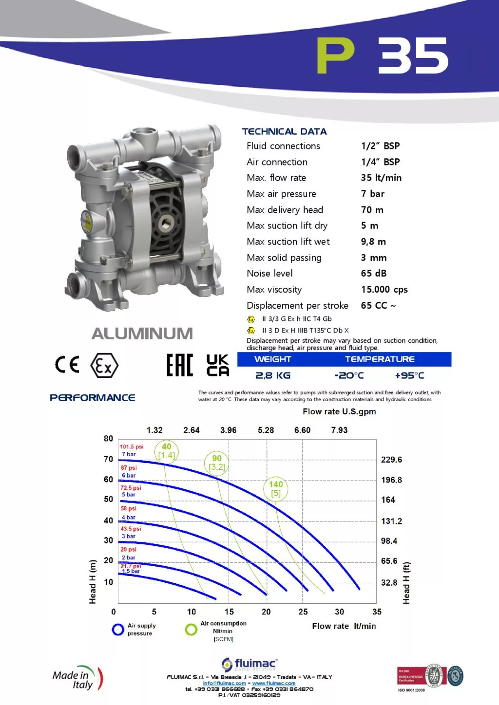 Fluimac Phoenix 35 l/perces alumíniumházas membránszivattyú olajos közeghez Fluimac Phoenix 35 l/perces alumíniumházas membránszivattyú olajos közeghez