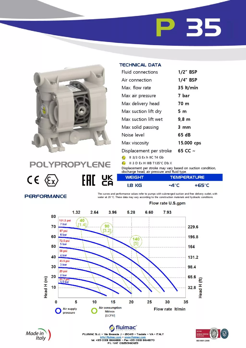 Fluimac Phoenix 35 l/perces műanyagházas membránszivattyú enyhén koptató közeghez Fluimac Phoenix 35 l/perces műanyagházas membránszivattyú enyhén koptató közeghez