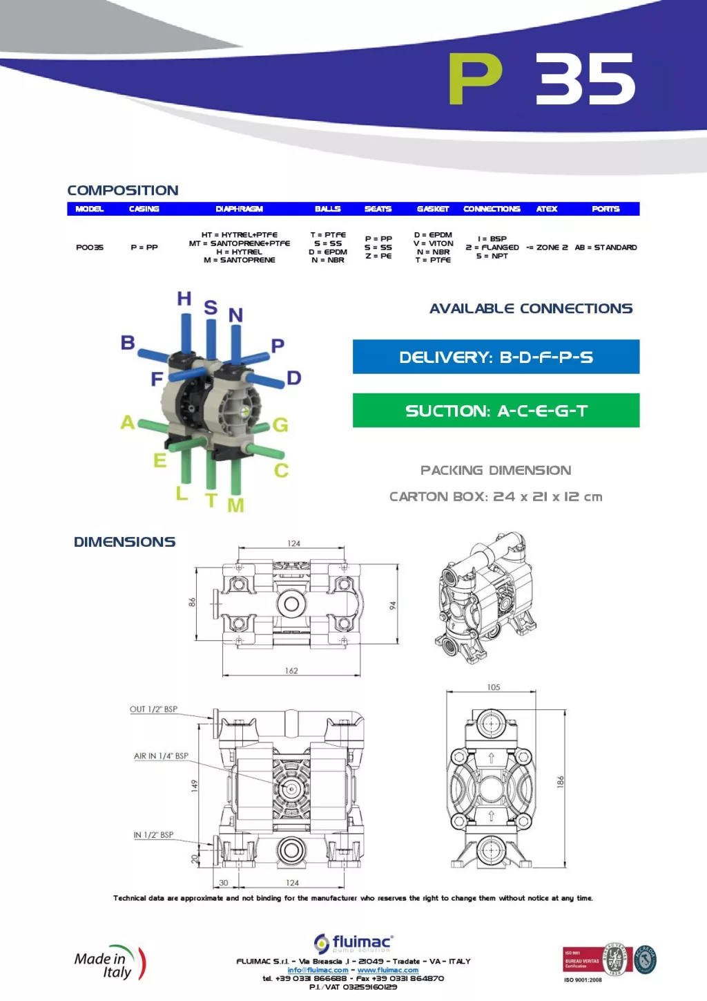 Fluimac Phoenix 35 l/perces műanyagházas teflonmembrános membránszivattyú Fluimac Phoenix 35 l/perces műanyagházas teflonmembrános membránszivattyú