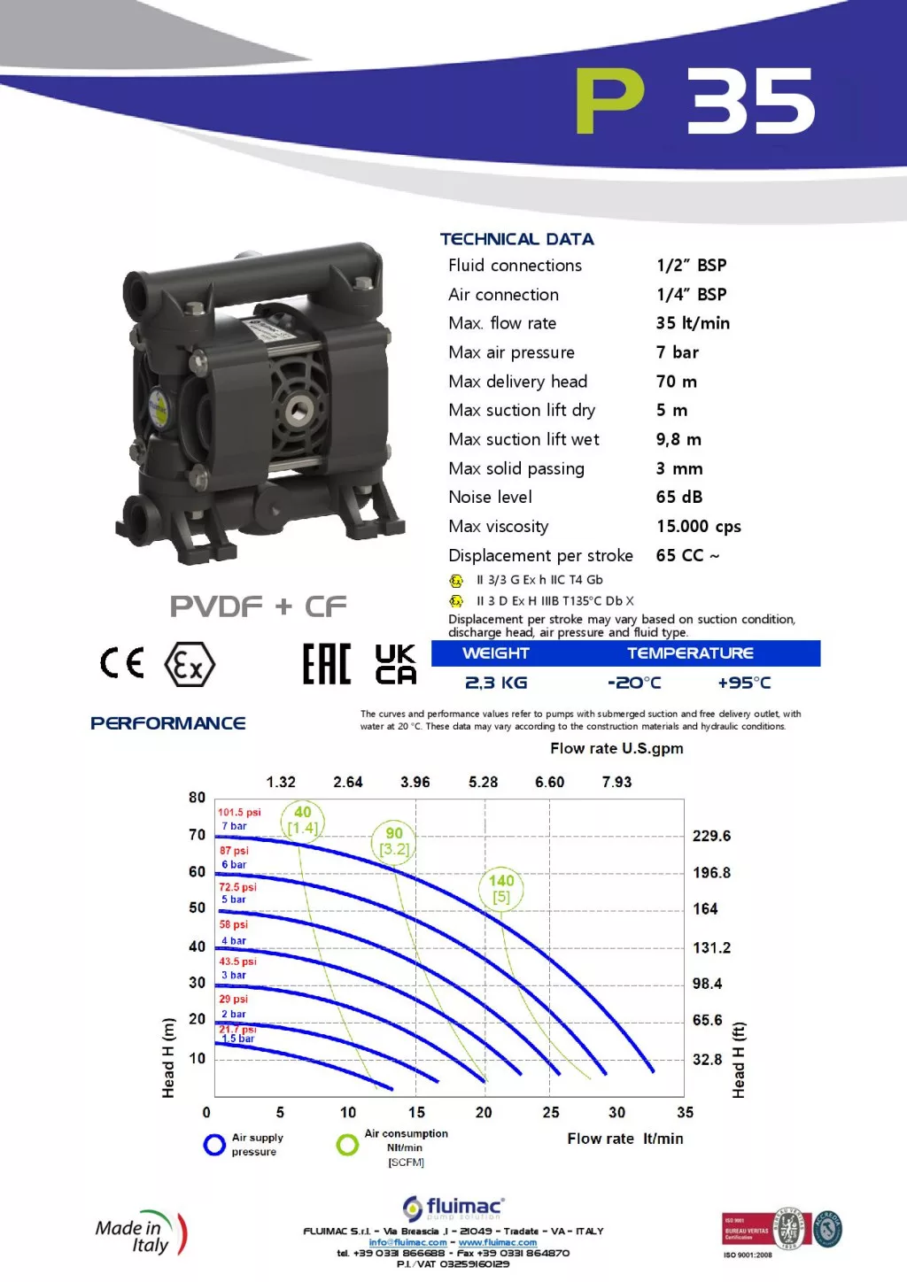 Fluimac Phoenix 35 l/perces műanyagházas teflonmembrános membránszivattyú ATEX Zóna1-be Fluimac Phoenix 35 l/perces műanyagházas teflonmembrános membránszivattyú ATEX Zóna1-be