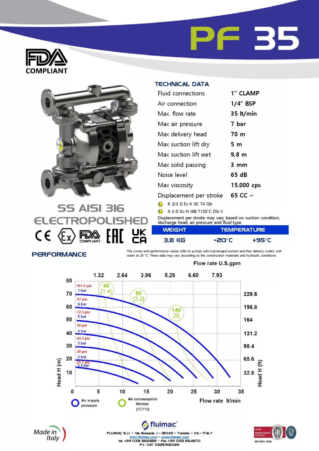 Fluimac Phoenix 35 l/perces rozsdamentes acél élelmiszeripari membránszivattyú Fluimac Phoenix 35 l/perces rozsdamentes acél élelmiszeripari membránszivattyú