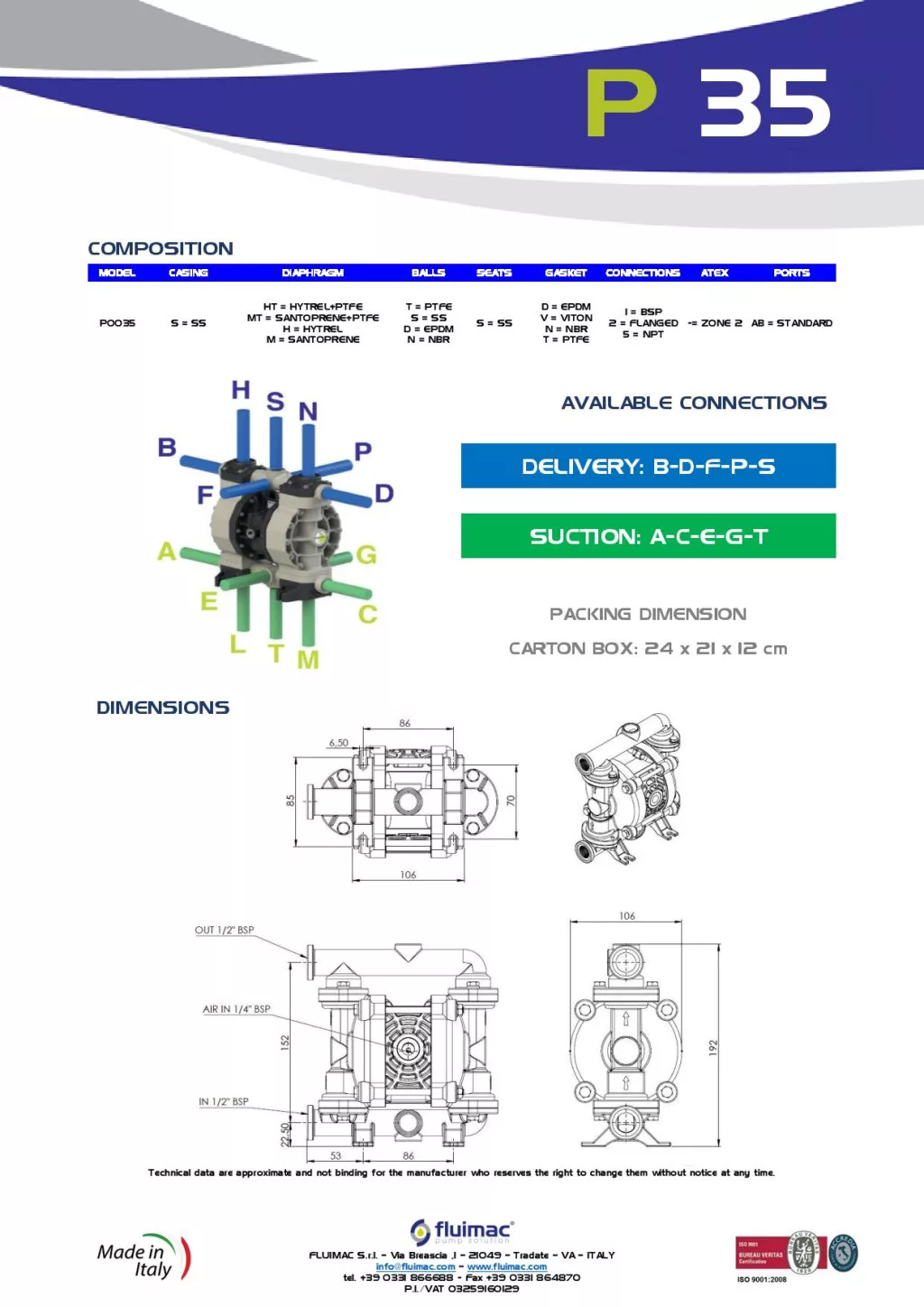 Fluimac Phoenix 35 l/perces rozsdamentes acél házas teflonmembrános membránszivattyú Fluimac Phoenix 35 l/perces rozsdamentes acél házas teflonmembrános membránszivattyú