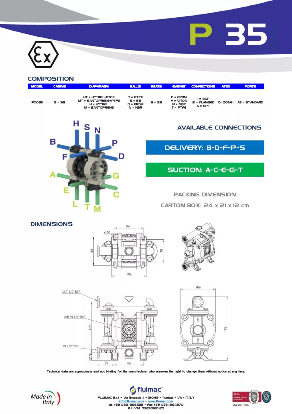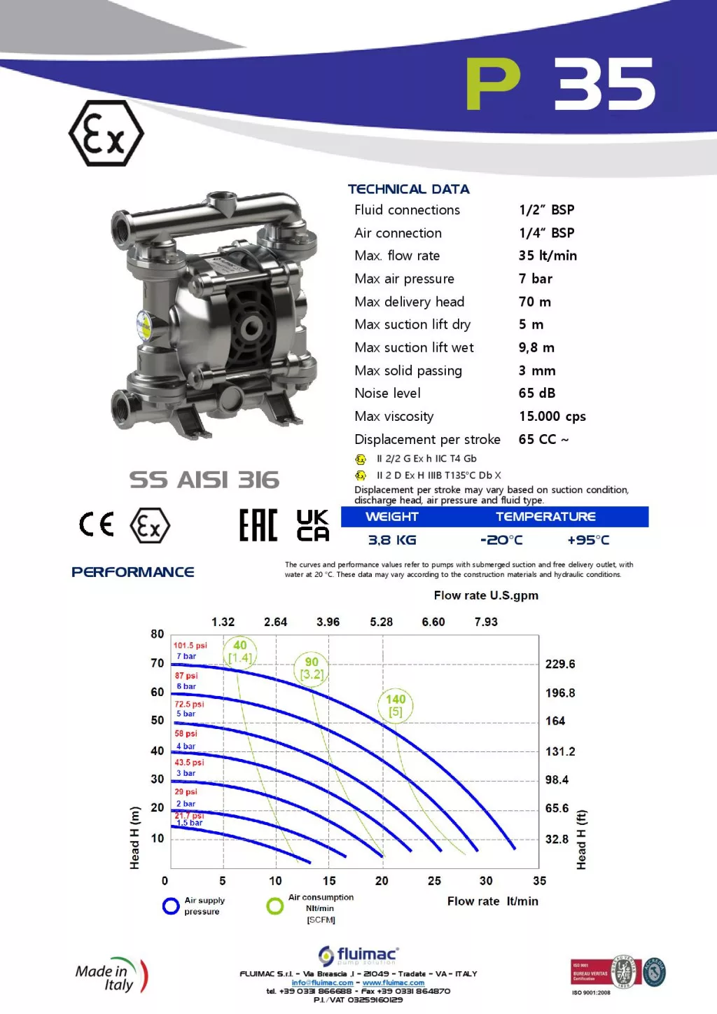 Fluimac Phoenix 35 l/perces rozsdamentes acél teflonmembrános membránszivattyú ATEX Zóna1-be Fluimac Phoenix 35 l/perces rozsdamentes acél teflonmembrános membránszivattyú ATEX Zóna1-be