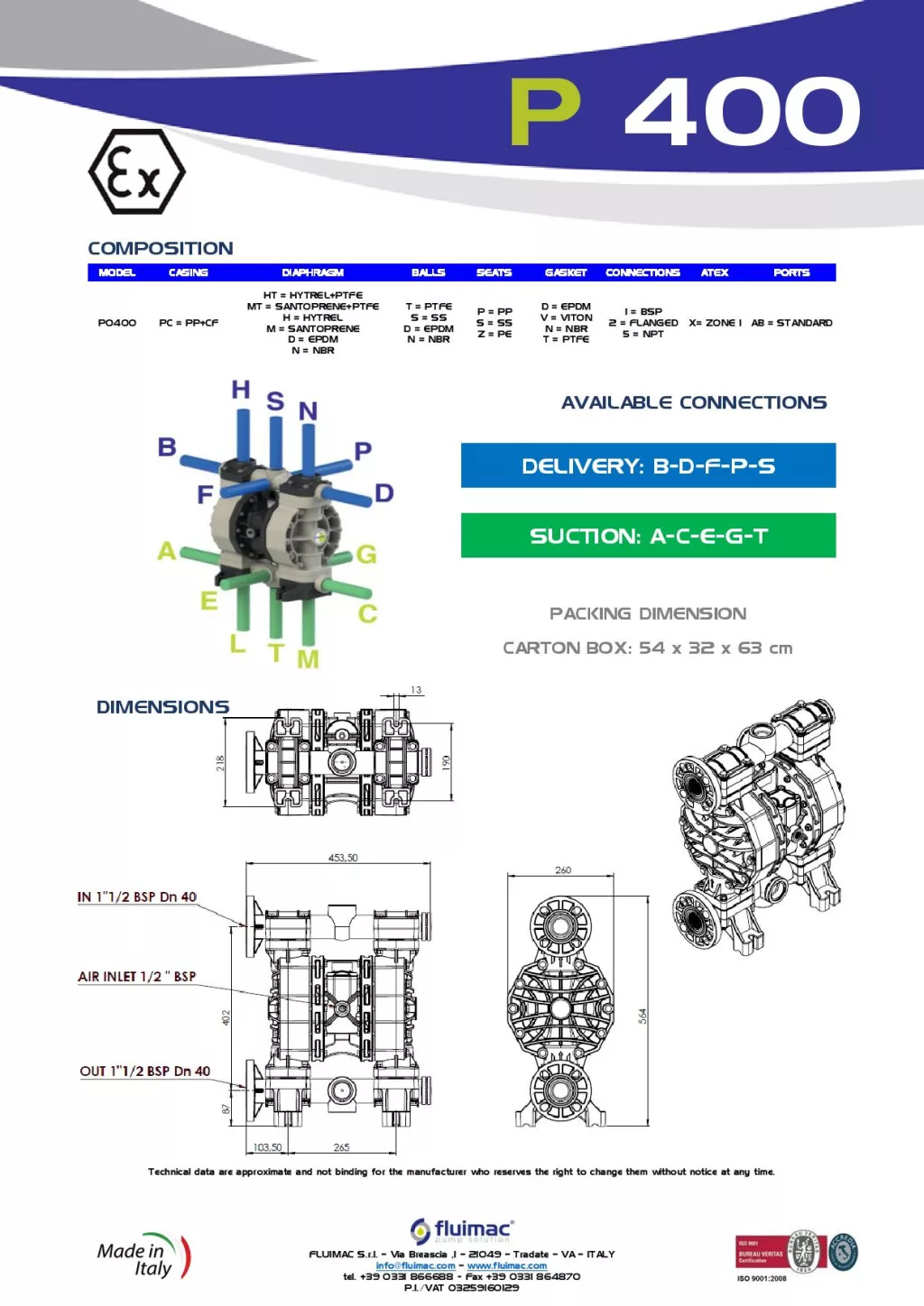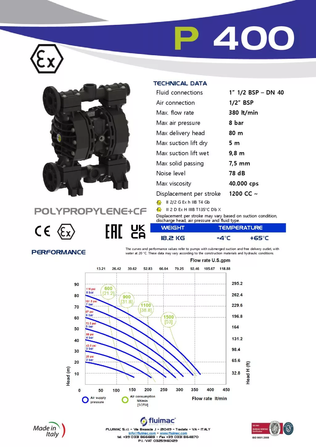 Fluimac Phoenix 380 l/perces műanyagházas teflonmembrános membránszivattyú ATEX Zóna1-be Fluimac Phoenix 380 l/perces műanyagházas teflonmembrános membránszivattyú ATEX Zóna1-be