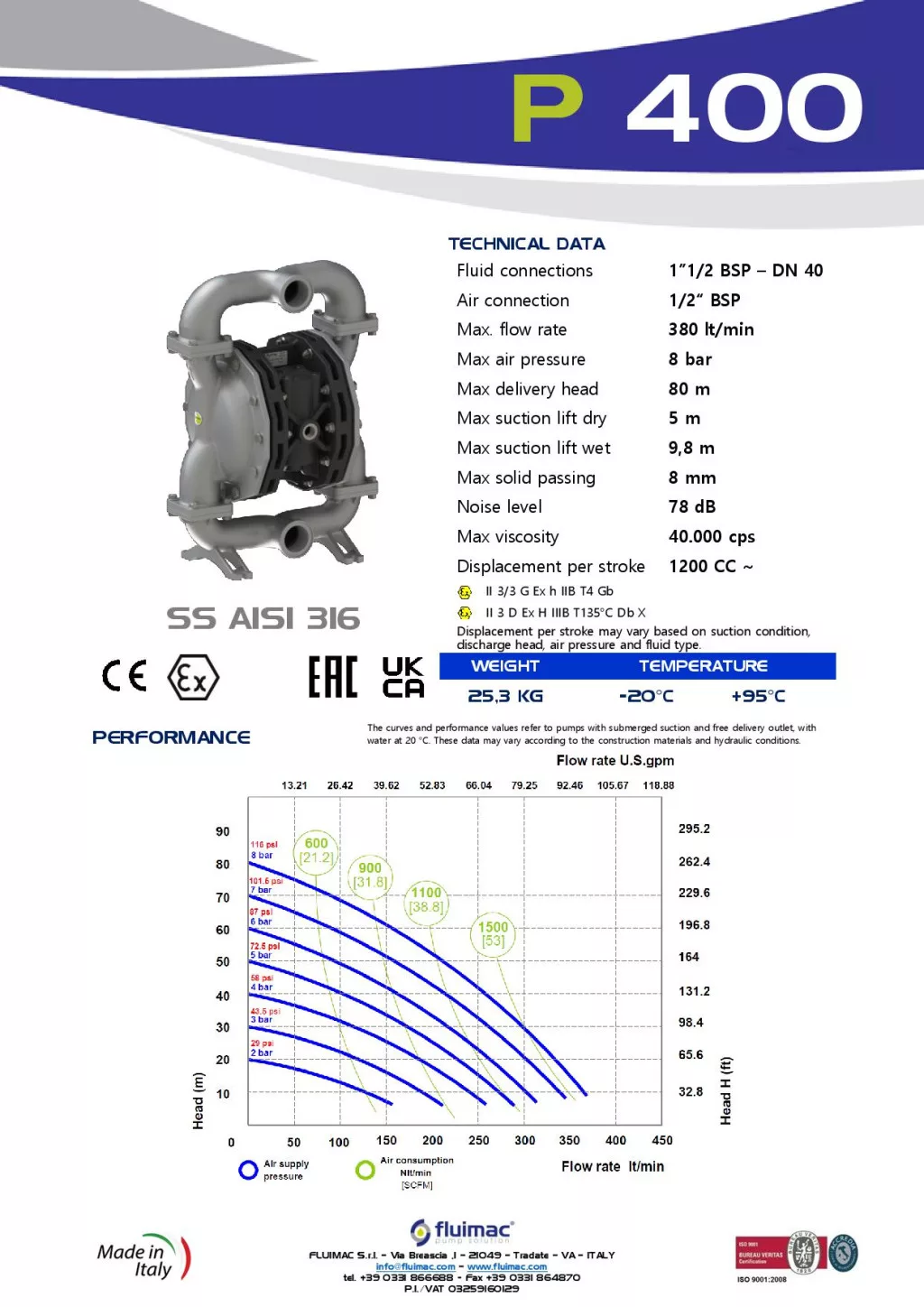Fluimac Phoenix 380 l/perces rozsdamentes acél házas teflonmembrános membránszivattyú Fluimac Phoenix 380 l/perces rozsdamentes acél házas teflonmembrános membránszivattyú