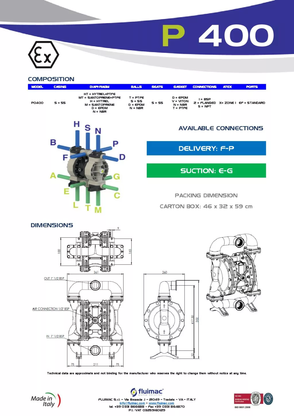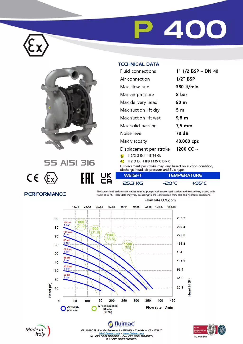 Fluimac Phoenix 380 l/perces rozsdamentes acél teflonmembrános membránszivattyú ATEX Zóna1-be Fluimac Phoenix 380 l/perces rozsdamentes acél teflonmembrános membránszivattyú ATEX Zóna1-be