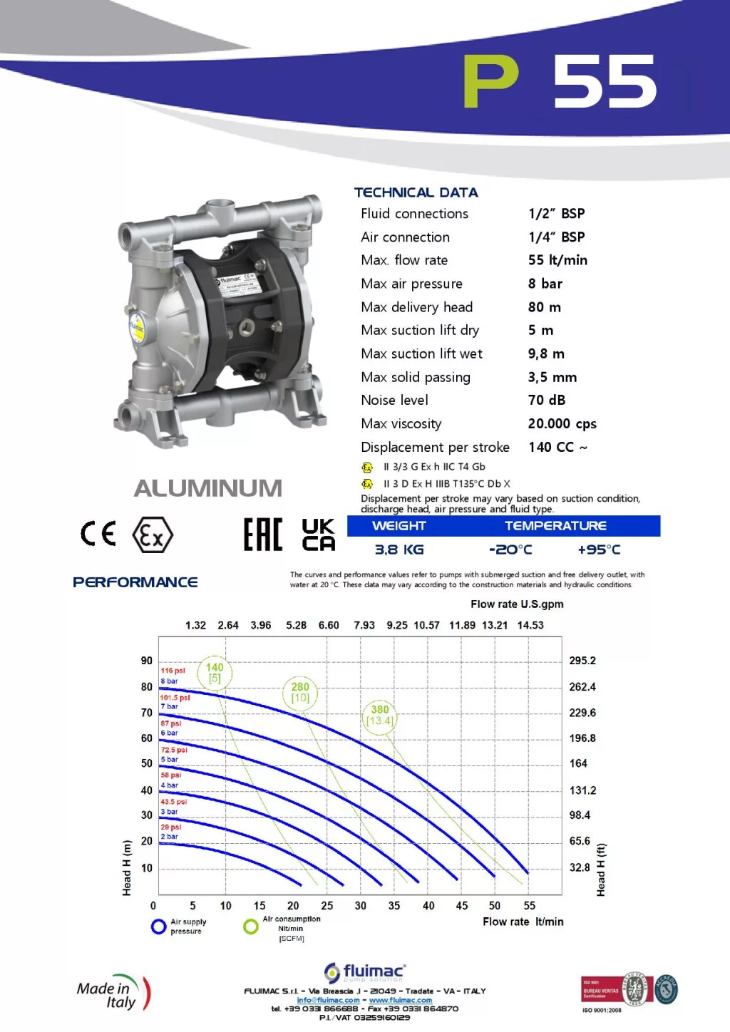 Fluimac Phoenix 55 l/perces alumíniumházas membránszivattyú olajos közeghez Fluimac Phoenix 55 l/perces alumíniumházas membránszivattyú olajos közeghez