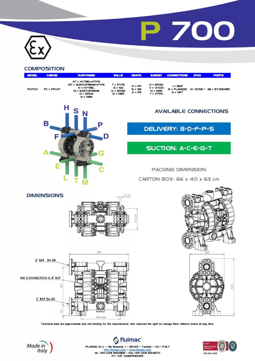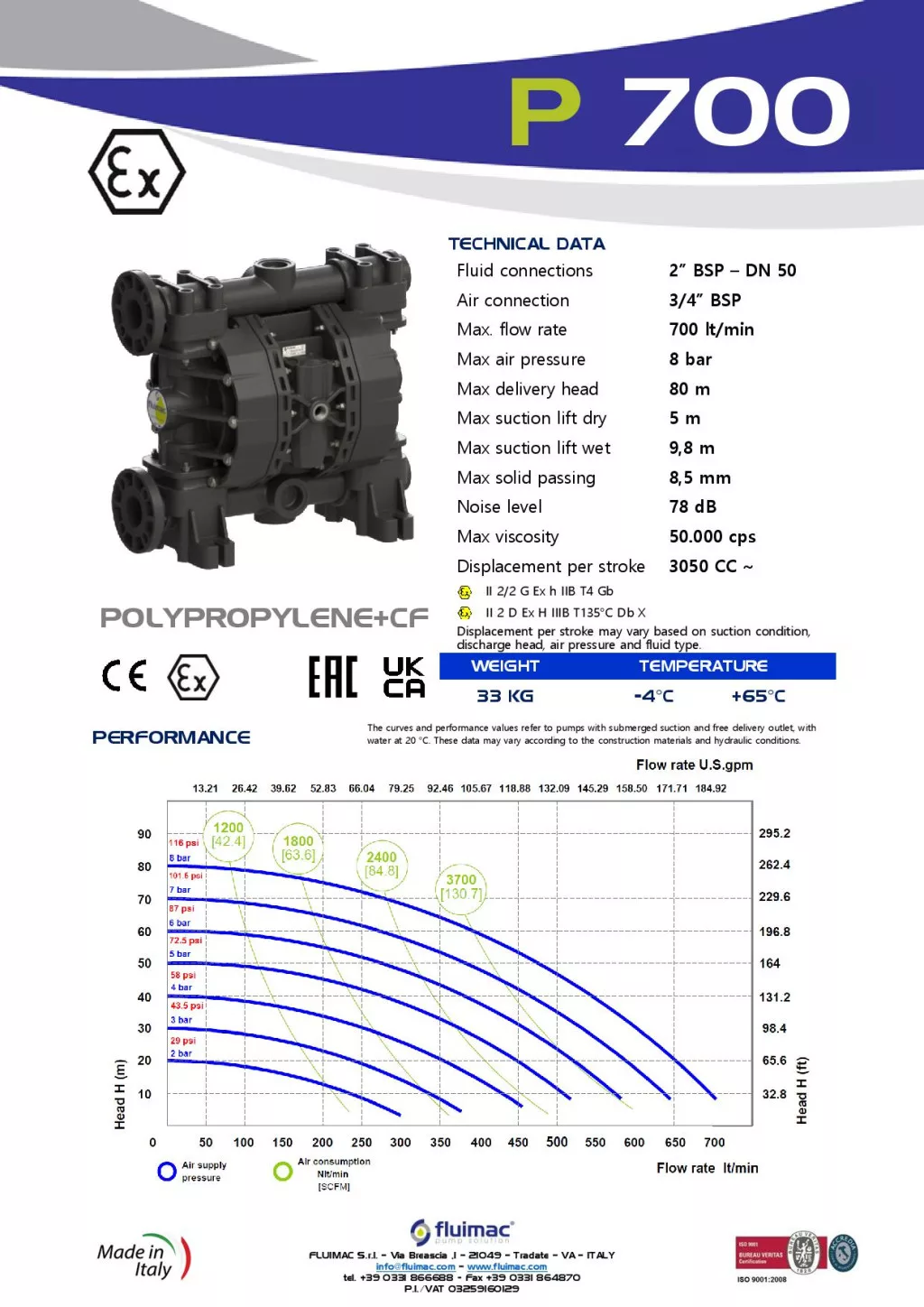 Fluimac Phoenix 700 l/perces műanyagházas teflonmembrános membránszivattyú ATEX Zóna1-be Fluimac Phoenix 700 l/perces műanyagházas teflonmembrános membránszivattyú ATEX Zóna1-be