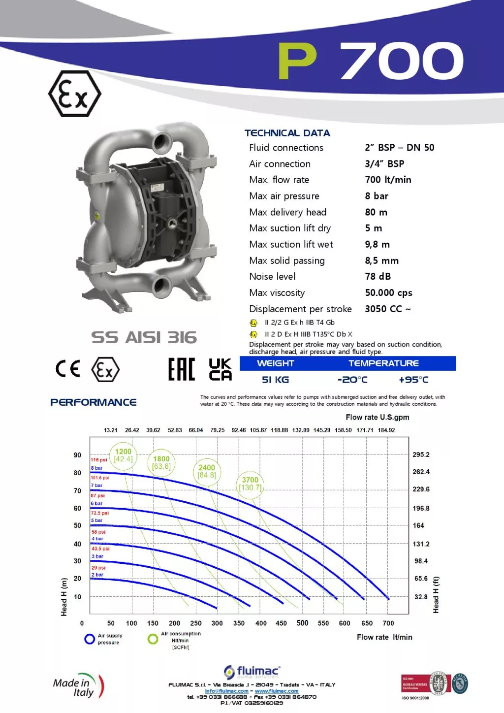 Fluimac Phoenix 700 l/perces rozsdamentes acél teflonmembrános membránszivattyú ATEX Zóna1-be Fluimac Phoenix 700 l/perces rozsdamentes acél teflonmembrános membránszivattyú ATEX Zóna1-be
