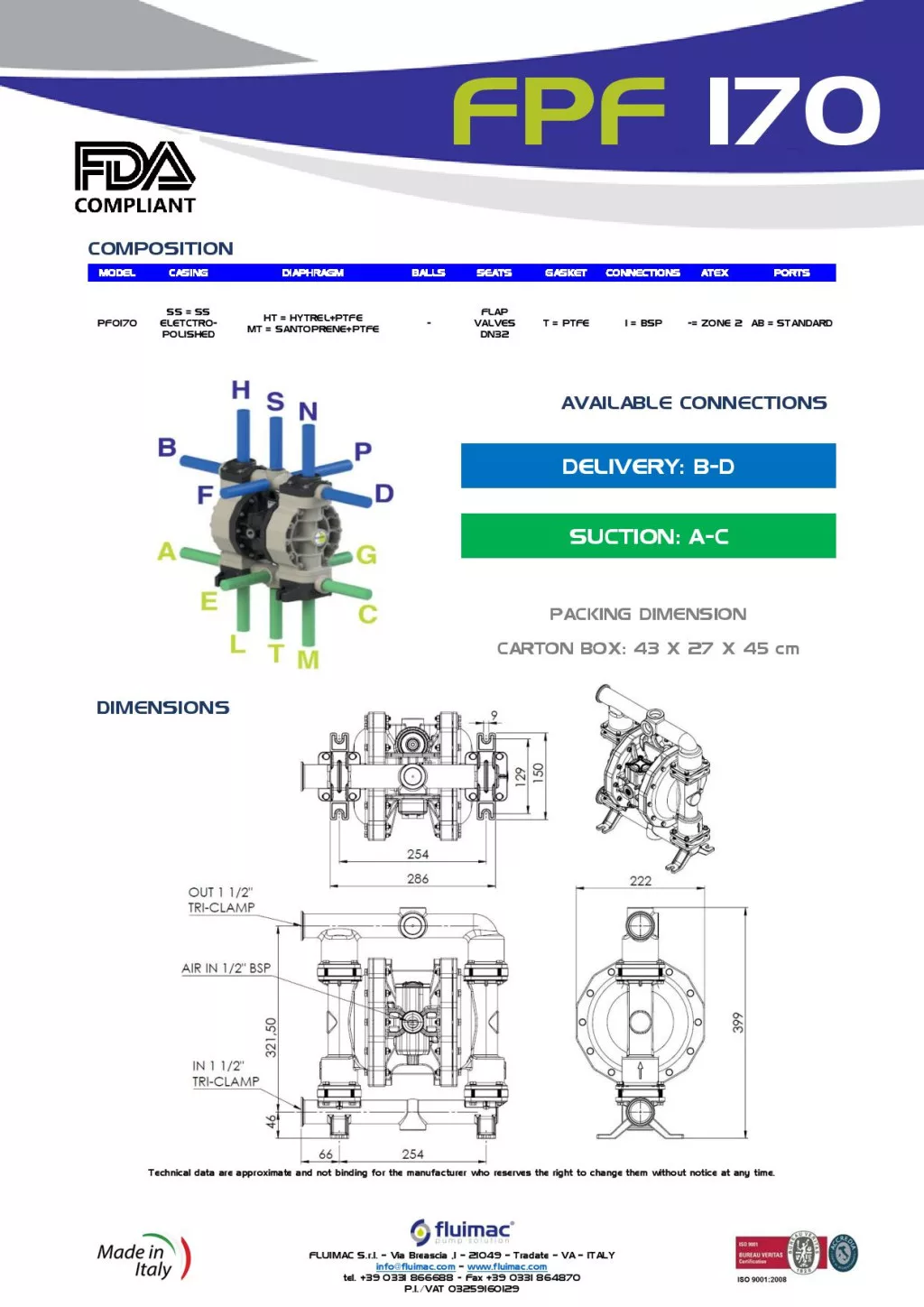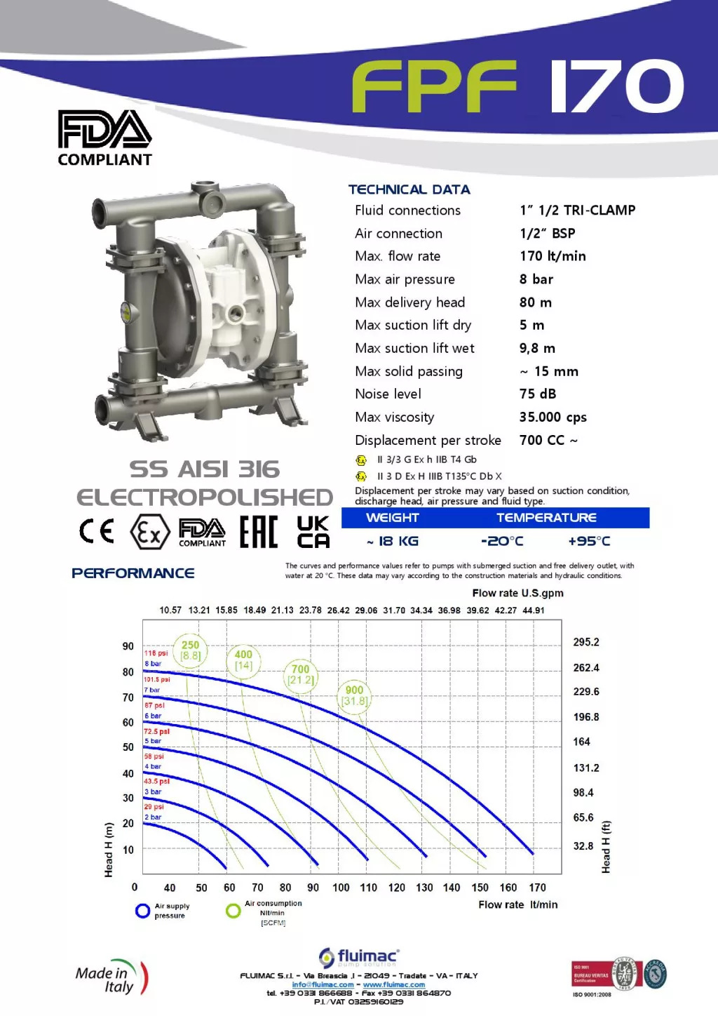 Fluimac Phonix 170 l/perces rozsdamentes acél, élelmiszeripari, nagy átömlésű, csappantyús membránszivattyú Fluimac Phonix 170 l/perces rozsdamentes acél, élelmiszeripari, nagy átömlésű, csappantyús membránszivattyú