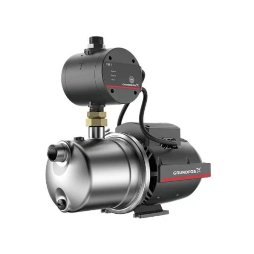 A PM1 nyomásfokozó egy Grundfos JP szivattyút és egy nyomásvezérlőt tartalmaz. Biztosítja az állandó víznyomást automatikus indítással és leállítással, igazodva a felhasználáshoz egy intelligens nyomásvezérlő által. A nyomásvezérlő 2.2 bar-nál indítja el a szivattyút és a szivattyú addig üzemel, amíg van áramlás.