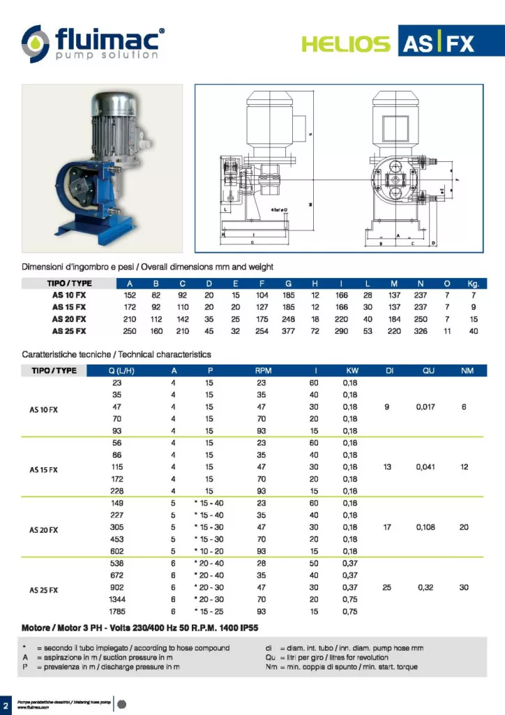 Fluimac Helios Fix fordulatszámú, alacsony nyomású perisztaltikus szivattyú (max. 228 l/h, norprene tömlővel)