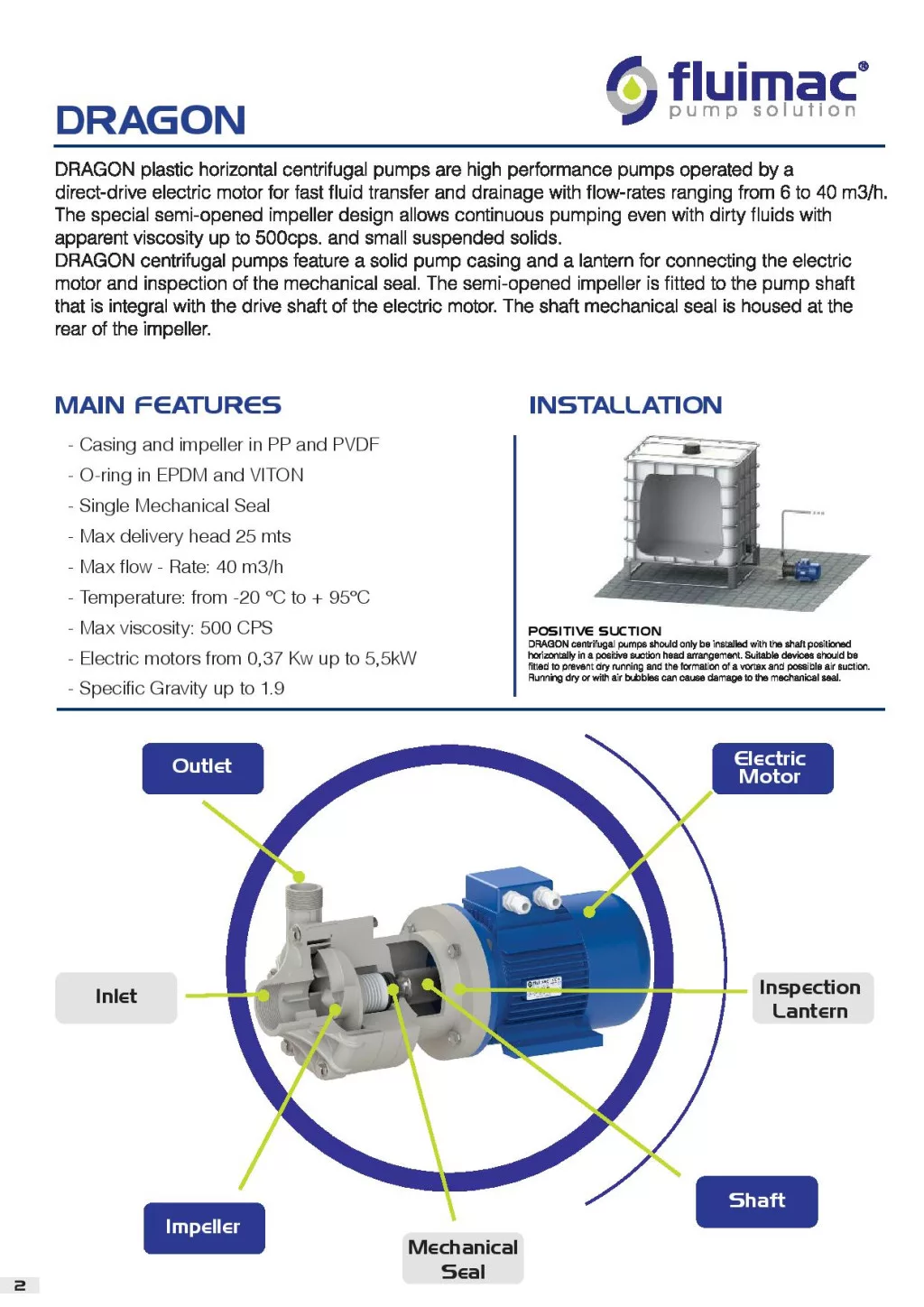 Dragon 40 m3/h kapacitású PVDF házas csúszógyűrűs vegyi centrifugál szivattyú EPDM, 3 fázis