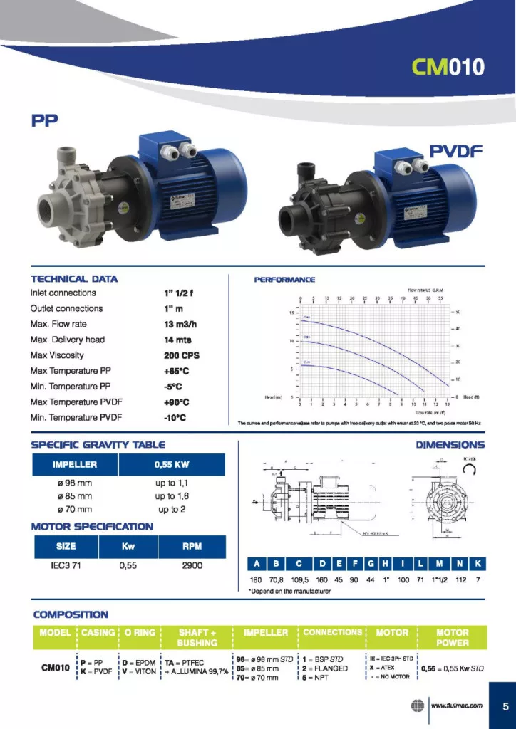 Compass 13 m3/h kapacitású PVDF házas mágneskuplungos vegyi centrifugál szivattyú Viton, 1 fázis Compass 13 m3/h kapacitású PVDF házas mágneskuplungos vegyi centrifugál szivattyú Viton, 1 fázis