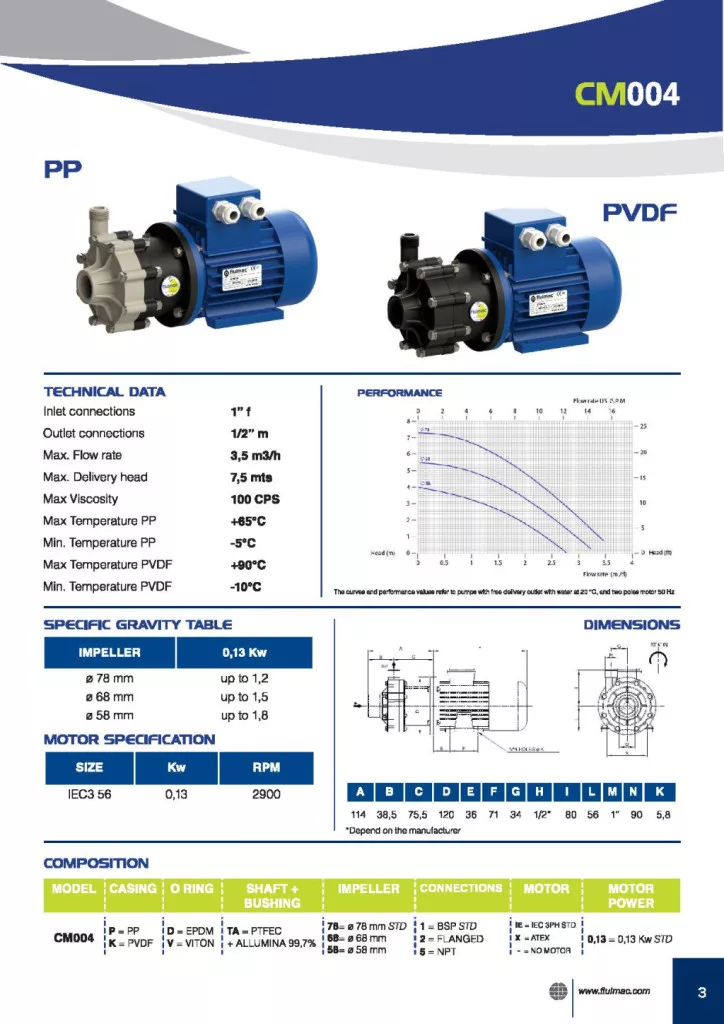 Compass 3,5 m3/h kapacitású PP házas mágneskuplungos vegyi centrifugál szivattyú Viton, 1 fázis Compass 3,5 m3/h kapacitású PP házas mágneskuplungos vegyi centrifugál szivattyú Viton, 1 fázis