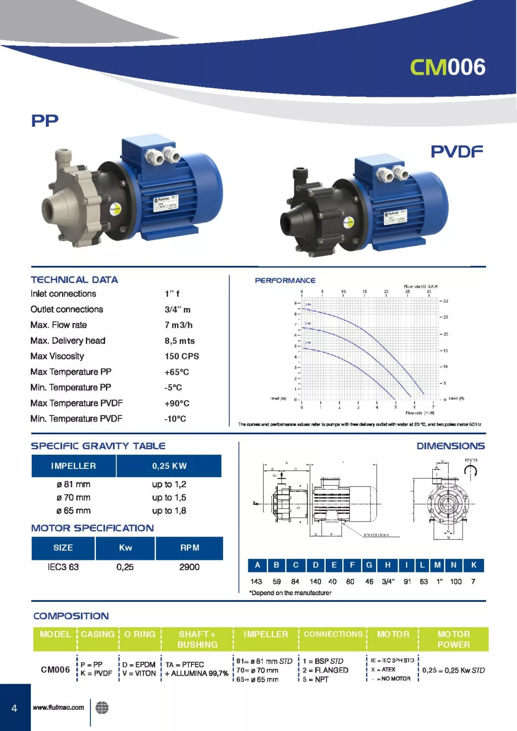 Compass 7 m3/h kapacitású PP házas mágneskuplungos vegyi centrifugál szivattyú EPDM, 1 fázis Compass 7 m3/h kapacitású PP házas mágneskuplungos vegyi centrifugál szivattyú EPDM, 1 fázis